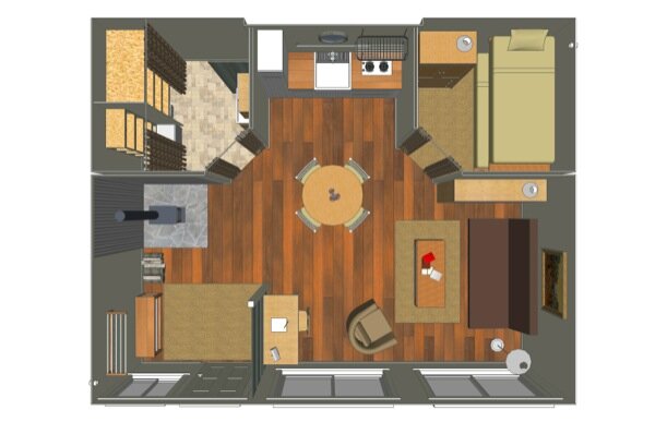 Here is the floor plan for this three 20' container cabin. Check out the blog for a ton more pictures at www.tincancabin.com