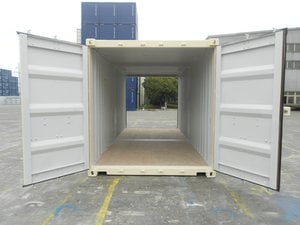 Duo-cons are two 10' containers welded together at the corner castings. When they get to the US, we cut them apart and have their end walls—which are included inside the container—installed on them. We sell these as they come over from China (two stuck together) and as 10' containers after the work is done.