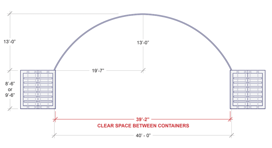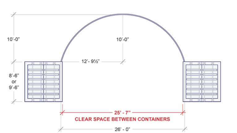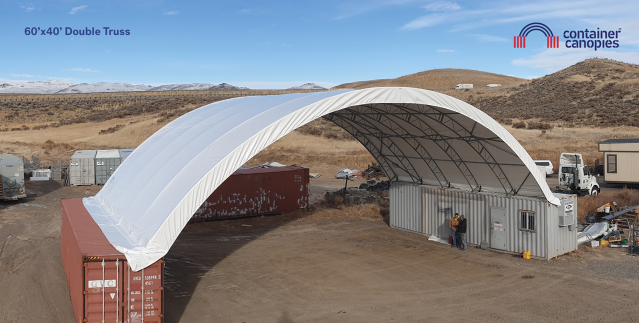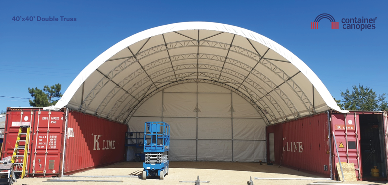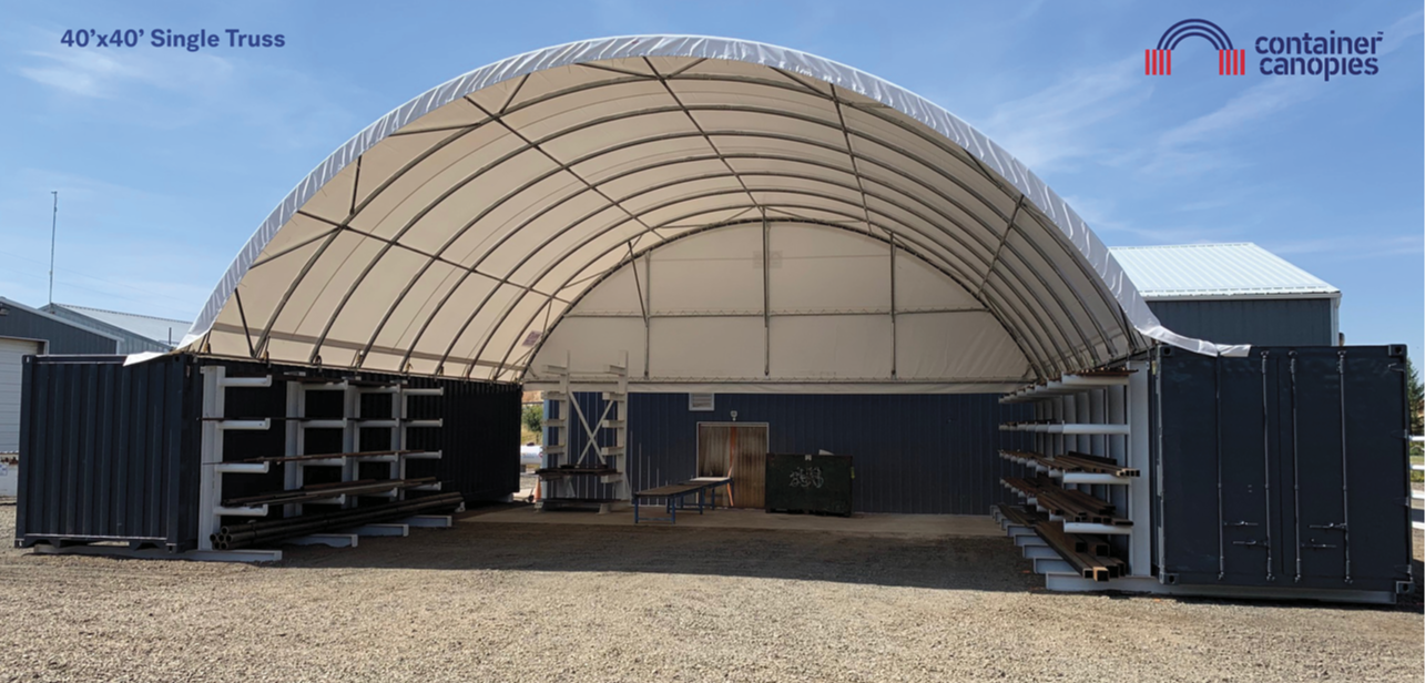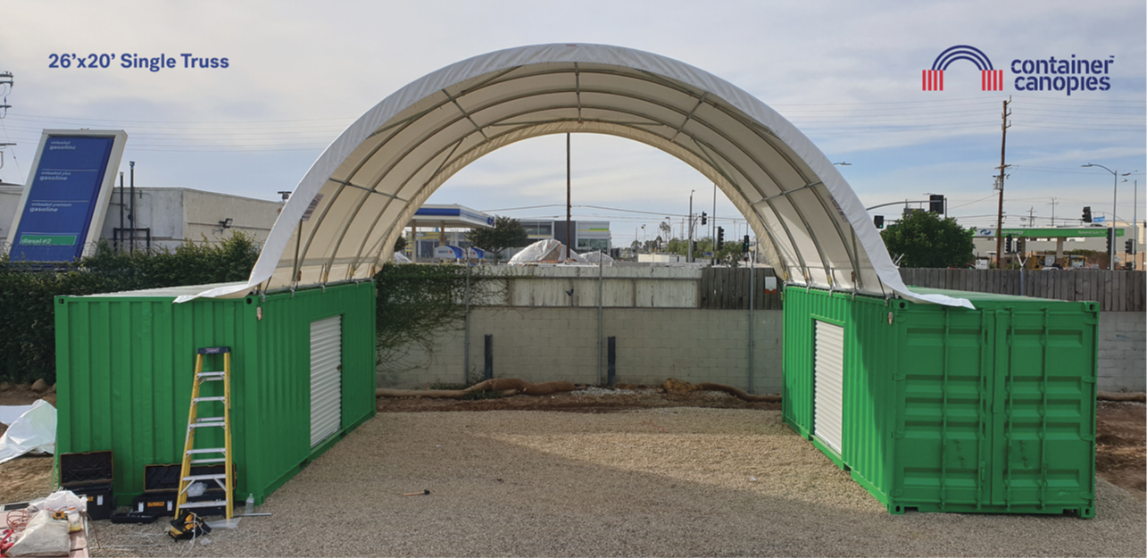 Super Cubes is proud to offer canopies from Container Canopies. We offer the following size canopies that span between two containers. There are optional front, back and half walls for some of the options.